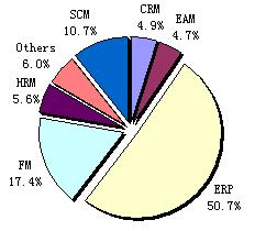 賽迪顧問定義的管理軟件市場(chǎng)包括財(cái)務(wù)管理軟件、ERP軟件、CRM軟件、SCM軟件、HRM軟件、EAM軟件等細(xì)分產(chǎn)品市場(chǎng)。2006年ERP軟件銷售額已經(jīng)獨(dú)占50.7%的比例,但是在增長(zhǎng)率方面,對(duì)人力資源管理、激勵(lì)制度、績(jī)效考核等規(guī)范化需求的上升使HRM軟件同比增長(zhǎng)了26.1%;對(duì)銷售、客戶資源的精細(xì)化管理帶來CRM軟件25.7%的同比增長(zhǎng)率;另外,一個(gè)值得關(guān)注的亮點(diǎn)是EAM軟件比去年同期增長(zhǎng)了24.8%,增長(zhǎng)的主要?jiǎng)右騺碓从贓AM軟件應(yīng)用從電力行業(yè)向其它資產(chǎn)密集型行業(yè),包括能源、精密制造、公共事業(yè)等領(lǐng)域的迅速滲透。這三類產(chǎn)品的較快增長(zhǎng)反映了一個(gè)有趣的特點(diǎn)是:這三類產(chǎn)品都是基于關(guān)系的管理,包括客戶關(guān)系、供應(yīng)商關(guān)系、員工關(guān)系,這表明企業(yè)用戶正試圖從不同角色的關(guān)系理順、定位清楚、聯(lián)系強(qiáng)化中尋求管理的改進(jìn)。雖然這個(gè)特點(diǎn)僅僅是從不同產(chǎn)品線的銷售趨向透示出的,但實(shí)際上它表達(dá)了用戶對(duì)于流程規(guī)范、精細(xì)管理的愿望。