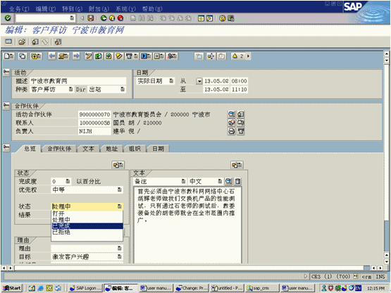 Explorer的層級樹結(jié)構(gòu)顯示客戶間的業(yè)務(wù)關(guān)系。通過報價菜單選項(xiàng)中預(yù)定義報價信息使用訂單輸入功能。可以轉(zhuǎn)化成為訂單,后臺功能與SAPR/3集成可以實(shí)現(xiàn)。
