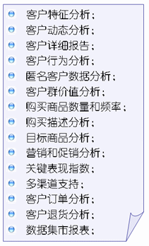 IQ等主流數(shù)據(jù)倉(cāng)庫(kù)系統(tǒng)的無(wú)縫銜接,實(shí)現(xiàn)了CRM最核心的價(jià)值——多維度的客戶分析,從而在技術(shù)上和應(yīng)用上遠(yuǎn)遠(yuǎn)超越了傳統(tǒng)的CRM。