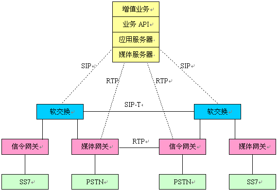 軟交換的核心競爭力主要在軟件方面,它即可以作為獨(dú)立的NGN網(wǎng)絡(luò)部件,分布在網(wǎng)絡(luò)的各處,為所有媒體提供基本業(yè)務(wù)和補(bǔ)充業(yè)務(wù),也可以與其它的增強(qiáng)業(yè)務(wù)節(jié)點(diǎn)結(jié)合,形成新的產(chǎn)品形態(tài)。正是軟交換的靈活性,使得它可以應(yīng)用在各個領(lǐng)域。