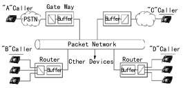 網(wǎng)關或路由器內(nèi)部的語音編碼器對帶內(nèi)音頻信號進行打包和重組。這些器件對確認接收和有效數(shù)據(jù)包接收的順序進行糾錯檢查。一旦發(fā)現(xiàn)錯誤,將命令重發(fā),而重發(fā)相關數(shù)據(jù)包則不可避免地造成傳輸上的延時。網(wǎng)關或路由器上的緩存器
