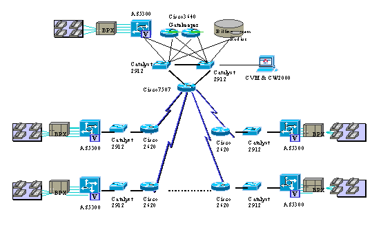 VoIP網關AS5300問世以來就可以支持兩個VoIP的中繼端口,在業(yè)界屬較高密度,而且99年年中就支持4個E1VoIP中繼端口。更主要的是AS5300具有Voice/Fax功能卡,能自動識別Voice和Fax,與Voice和Fax要采用不通的功能卡的產品相比,等于容量更是提高。這些技術特點為該試驗網工程的可擴展性提供了較高的起點。