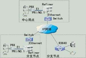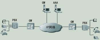 對(duì)于大多數(shù)的企業(yè)用戶,都擁有自己的用戶交換機(jī)PBX。在進(jìn)行IP電話網(wǎng)的建設(shè)中,這些PBX將被保留,繼續(xù)承擔(dān)起用戶接入的功能。而這些PBX之間的中繼連接都將通過IP骨干網(wǎng)來完成。這樣,既可以節(jié)約價(jià)格不菲的長途中繼租用費(fèi),也避免了大規(guī)模的改造所帶來的浪費(fèi)。
