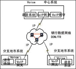 語音聯(lián)網可以由多個地市系統(tǒng)組成,同時可以將Voice Over IP聯(lián)網的關守設立在中心系統(tǒng)或其中的某一個地市,地市之間的語音聯(lián)網的數據通道可以利用銀行現有的數據網絡來支持,并根據需要分配帶寬。