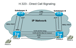 采用H.323網(wǎng)關(guān)和網(wǎng)守的控制協(xié)議來(lái)管理呼叫路由,具有很好的擴(kuò)展性,網(wǎng)絡(luò)配置也相對(duì)簡(jiǎn)單。每個(gè)H.323話(huà)音網(wǎng)關(guān)路由器在接入網(wǎng)絡(luò)時(shí)候通過(guò)RAS信令向網(wǎng)守注冊(cè)自己所控制的呼叫信息。這樣所有的呼叫控制信息都出現(xiàn)在網(wǎng)守上,話(huà)音網(wǎng)關(guān)路由器需要建立呼叫連接時(shí)向網(wǎng)守發(fā)出請(qǐng)求就可以得到目的話(huà)音網(wǎng)關(guān)路由器的相關(guān)信息,從而建立呼叫連接。(如圖二)