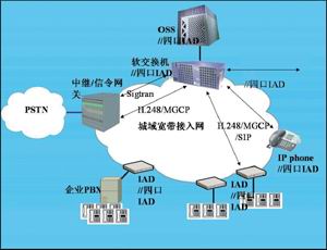 本地軟交換通過中繼/信令網(wǎng)關(guān)與PSTN互通,用戶接入終端形式通常有IAD(集成接入設(shè)備)和IP phone。IAD提供普通電話POTS接口,容量從單門到幾百門。IAD根據(jù)容量可以放置在用戶室內(nèi)、樓道或?qū)S脵C房里。IP