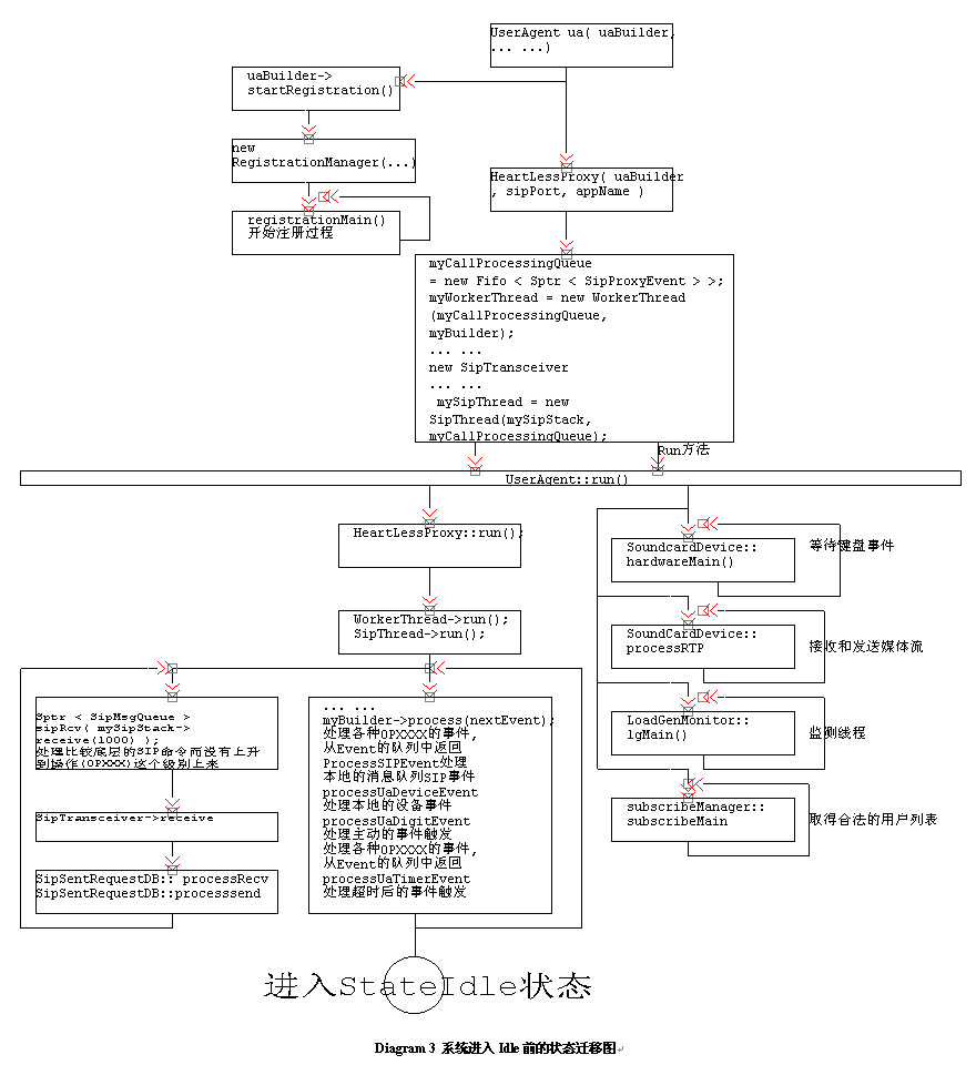 構(gòu)建User Agent的工作已經(jīng)完畢,現(xiàn)在應(yīng)該讓調(diào)用它的Run方法了;從下面的程序可以看到,Run方法的調(diào)用,讓整個程序進(jìn)入一種"Idle"的狀態(tài),等待命令輸入和狀態(tài)的產(chǎn)生,這個過程我們可以看到在Ua.CXX的Main程序中調(diào)用(ua.run())。