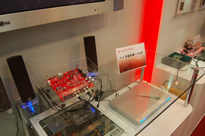 SigmaTel是給家庭影院增加了VOIP功能,如果你在聽(tīng)音樂(lè)的時(shí)候想和朋友通話,你可以利用PC上的無(wú)線VOIP和數(shù)字麥克風(fēng)輕松實(shí)現(xiàn)交流。SigmaTel的STAC9271、9272、9273等系列產(chǎn)品是10聲道音頻編解碼器,可以實(shí)現(xiàn)帶同步VOIP或立體聲7.1音頻系統(tǒng)。利用SigmaTel的knowles麥克風(fēng)波束成型、回聲消除和噪聲抑制技術(shù),可以獲得清晰的VOIP通話質(zhì)量。SigmaTel亞洲區(qū)軟件開(kāi)發(fā)經(jīng)理辛志華表示,這方面的開(kāi)發(fā)難點(diǎn)是軟件部分,不SigmaTel可以提供全套的軟件幫助客戶快速開(kāi)發(fā)出產(chǎn)品。