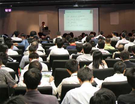 美國(guó)訊時(shí)捷北京首席代表熊恩泰先生在“如何利用新一代的IP-PBX提高企業(yè)競(jìng)爭(zhēng)優(yōu)勢(shì)”演講中為在場(chǎng)觀眾演示了公司自主研發(fā)的IP PBX系統(tǒng),引起在場(chǎng)的代表高度關(guān)注;目前國(guó)內(nèi)最大、發(fā)展最快的虛擬運(yùn)營(yíng)商中寬網(wǎng)信運(yùn)營(yíng)總裁余輝先生分別以企業(yè)簡(jiǎn)介、創(chuàng)業(yè)機(jī)會(huì)、解決方案、發(fā)展規(guī)劃為與會(huì)者分享了公司所取得的成果,引起來(lái)與會(huì)者的高度關(guān)注。