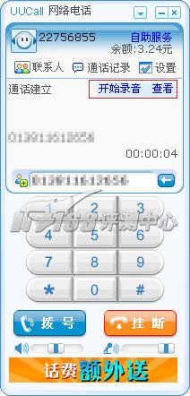 對于新注冊用戶,UUcall很大方的贈送了30分鐘時長的話費-3.6元。