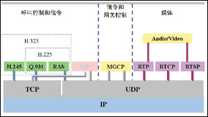 H.323和SIP都是呼叫控制和信令協(xié)議,它們的關系如圖所示。從圖上可以看出H.323協(xié)議和SIP協(xié)議處于相同的功能區(qū)間,但是又處于不同的范圍,因而各有特點,又各自不同。