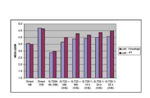 圖2對(duì)MOS(平均意見(jiàn)得分)值的分析深刻說(shuō)明了寬帶是如何被主觀(guān)感知的。窄帶G.729A的多數(shù)MOS值約為 3.5,而高清語(yǔ)音的MOS值至少比其高出30%,達(dá)到4.5。