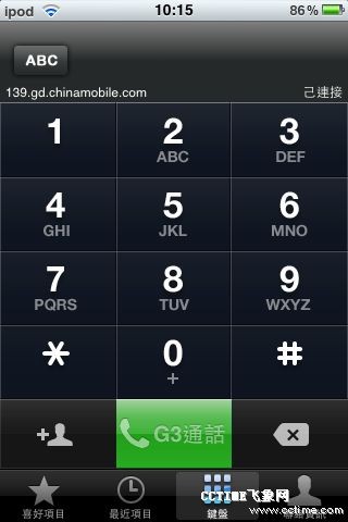 “G3通話”客戶端的用戶界面與iPhone撥號(hào)界面極為相似,并標(biāo)注有139.gd.chinamobile.com的網(wǎng)址,不過目前該網(wǎng)址無法進(jìn)入。該客戶端可提取系統(tǒng)自身聯(lián)系人列表,方便用戶撥打網(wǎng)絡(luò)電話。通話界面也與iOS4中的通話界面完全相同。