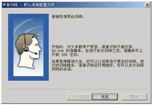 當你15分鐘的訓練全部結束后,將會看到如圖12所示的對話框,此時原來默認的用戶配置文件將用剛才所收集的訓練數(shù)據(jù)進行更新,稍候片刻,你就會看到如圖13所示的對話框,告訴你語音訓練已經(jīng)結束。
