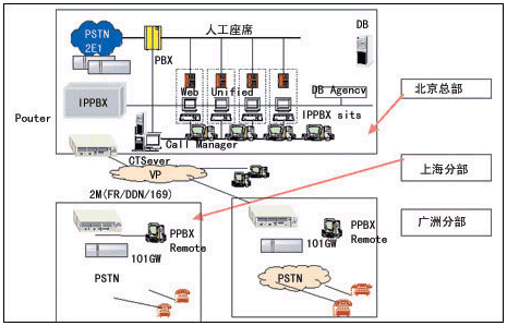 建設(shè)分布式呼叫中心系統(tǒng),從技術(shù)角度講,關(guān)鍵在于單點(diǎn)系統(tǒng)平臺、多點(diǎn)之間聯(lián)網(wǎng)和路由以及整個系統(tǒng)的統(tǒng)一管理三個方面。對于單點(diǎn)系統(tǒng)平臺的選擇,需要結(jié)構(gòu)簡單、投資適中、易于建設(shè),還需要采用開放式結(jié)構(gòu),以易于聯(lián)網(wǎng)、智能路由和統(tǒng)一管理;對于多點(diǎn)之間聯(lián)網(wǎng),一般數(shù)據(jù)通過廣域網(wǎng)傳遞,語音可以通過公共電話網(wǎng)(市話網(wǎng)和長話網(wǎng))傳遞,也可以采用VoIP技術(shù)與數(shù)據(jù)同在廣域網(wǎng)上傳遞;對于多點(diǎn)之間的智能路由和統(tǒng)一管理,物理上分布的多個系統(tǒng)完全可以看成邏輯上的一個系統(tǒng),利用專門的軟件實現(xiàn)統(tǒng)一管理和智能路由,包括呼叫前/后路由、智能呼叫溢出、坐席信息傳播、統(tǒng)一的實時狀態(tài)監(jiān)控和報表生成等,實現(xiàn)多個系統(tǒng)之間的負(fù)載均衡和災(zāi)難備份。