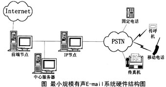----系 統(tǒng) 根 據(jù) 不 同 的 應(yīng) 用 可 以 有 不 同 的 規(guī) 模 和 體 系 結(jié) 構(gòu)。 對(duì) 于 企 業(yè) 的 有 聲 電 子 郵 件 服 務(wù) 系 統(tǒng), 最 小 的 規(guī) 模 可 以 如 下 圖 所 描 述。