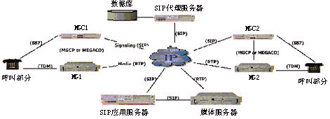 統(tǒng)一通信平臺(tái)使用會(huì)話初始化協(xié)議(Session Initiation Protocol)與VoIP網(wǎng)絡(luò)通信,如圖1所示。選擇SIP而不是其他協(xié)議(如H.323),是因?yàn)樗赩oIP領(lǐng)域中越來越多地被采用。這一點(diǎn)可以由Microsoft和Sun公司都宣稱支持SIP而不是H.323、MGCP或MEGACO協(xié)議而得到證明。
