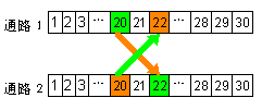 直接把要交換的Channel的對(duì)應(yīng)時(shí)隙的數(shù)據(jù)拷貝到通路(或另一通路)中要交換的時(shí)隙位置即可。下圖3顯示了兩個(gè)E1支路上不同通道(Channel)間的交換情況。