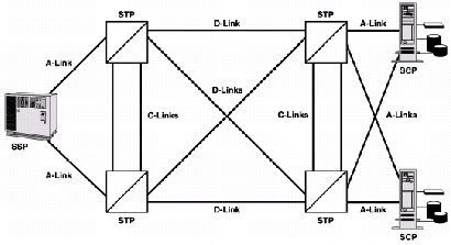 SS7提供消息傳遞以實現(xiàn)正確無誤的業(yè)務功能,如呼叫建立。因此,SS7被設計成能達到相當高的可靠性?煽啃詠碜枣溌返亩鄻有院腿哂鄠浞荨D4說明了一個簡單SS7網(wǎng)絡的標準例子,著重說明了一些內(nèi)建的可靠性特征,比如鏈路的網(wǎng)狀配置,這樣使得網(wǎng)絡中的每個信令點間都有冗余備份的鏈路,從而提高了整個網(wǎng)絡的可靠性。