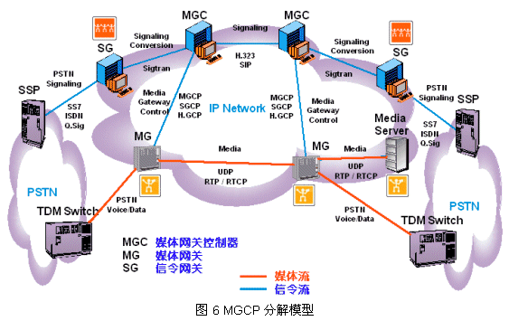 為了進(jìn)一步說明,圖6給出了MGCP協(xié)議模型的另一種表示:概念分解模型(請對照圖4、圖5)。下面介紹MGCP協(xié)議模型中最重要的協(xié)議:MGCP和SIP。