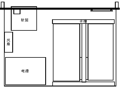 DSC110由若干水平插在卡槽兩側的板卡構成,卡槽固定在機箱的底部的后側。冷卻扇、硬盤、電源、軟盤驅(qū)動器和前端面板顯示卡都固定在機箱上。