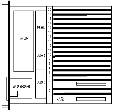 DSC210機箱包括具有20個插槽的無源主板,同時還有一個電源模塊、軟盤驅(qū)動器、風扇電源分配器、錯誤檢測模塊和一個前面板顯示卡。