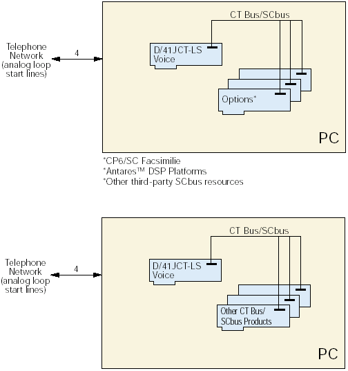 D/41JCT-LS板卡可以安裝在任何基于PCI的PC或服務(wù)器(PCI總線或混合PCI/ISA總線)以及兼容機(jī)(Dialogic386,Dialogic486,或奔騰處理器的PC平臺(tái))上。D/41JCT-LS板卡提供了創(chuàng)建4端口到32端口的集成語音方案所需的任何功能。所支持線路的最大數(shù)目依賴于應(yīng)用程序、所需磁盤I/O的總數(shù)以及主機(jī)CPU和電源。