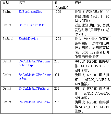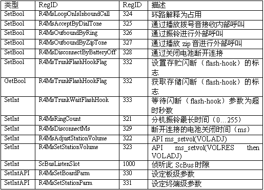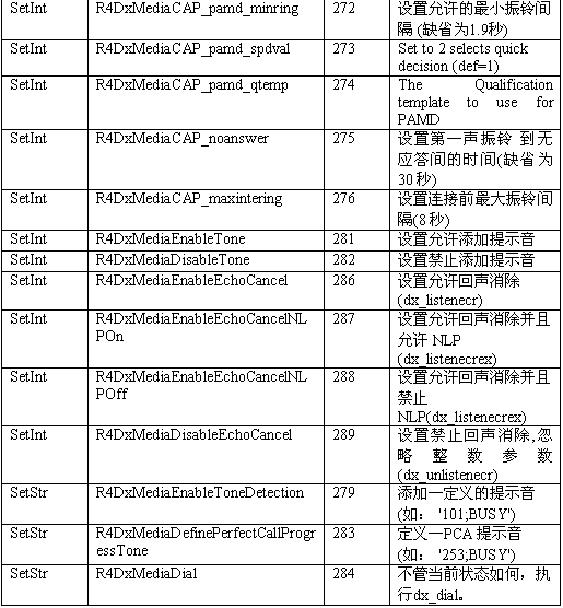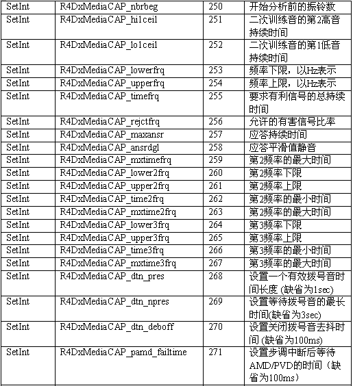 必須注意,調(diào)用API級的函數(shù)設(shè)置一個(gè)CTADE_A參數(shù)可能不只改變電路板級的參數(shù)。例如,R4DxMedia中,使用函數(shù)MediaSetBool設(shè)置REGID_R4DxMediaDisableAllToneDetection(280)為0或1來清除Dialogic提示音ID。