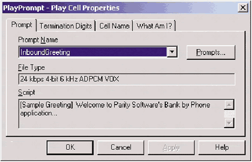 圖7: 特性對話框,用于為PlayPrimpt功能塊設置提示名稱和終端數字