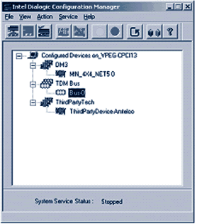 啟動(dòng)Dialogic服務(wù)器上的DCM由系統(tǒng)的主控選擇確定,一旦主控服務(wù)器運(yùn)行以后,所有的受控機(jī)可以同時(shí)啟動(dòng)。單擊DCM上的綠色按鈕(o),服務(wù)器將試圖為DCM啟動(dòng)服務(wù),當(dāng)服務(wù)啟動(dòng)后,DCM的面板指示器依次顯示為綠色。