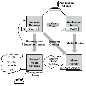 許多語音服務都是由媒體服務器提供的。例如,一個客戶給某個電子商務網(wǎng)站打電話會被接到一個自動語音應答(IVR)上或者自動總機上。這些應用使用了語音,語音識別和音頻等功能,都是運行在媒體服務器上的。在下一代網(wǎng)絡的實現(xiàn)中,媒體服務器就象是另一個電話(或者說,一個SIP的終端)。因此,他們可以享受和用戶一樣的SIP的優(yōu)點。