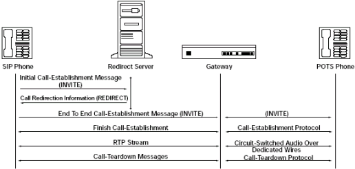 當某個人希望聯(lián)系Joe Smith,就使用Joe.Smith發(fā)起一個呼叫給sip.org代理或者重定向服務器。代理服務器就會與位置服務器聯(lián)系,位置服務器從數(shù)據(jù)空中查到往哪個地址發(fā)送呼叫。代理服務器隨后把INVITE消息發(fā)送到被叫方的地址并等待回復。如果服務器扮演的是一個重定向服務器的話,它會使用位置服務器查尋被叫方地址并在重定向消息中把這個地址發(fā)給主叫方。主叫方這時就會直接把消息發(fā)送到被叫方。上面兩種情況,RTP媒體流都是直接在主叫被叫方之間直接建立的。